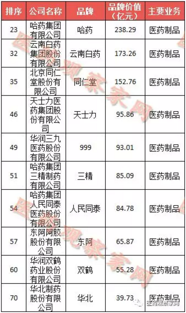 上述三个医药品牌同时也是价值超过百亿元的三家企业。