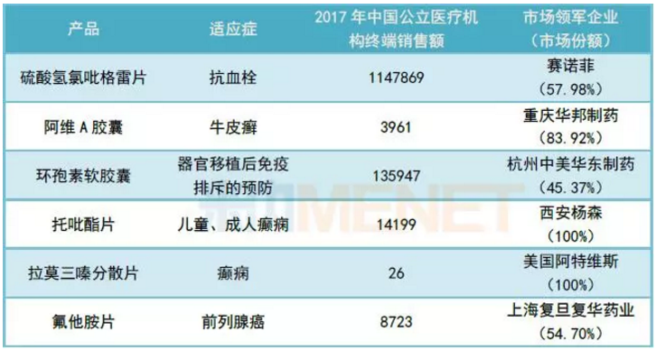 (来源:米内网中国公立医疗机构终端竞争格局)