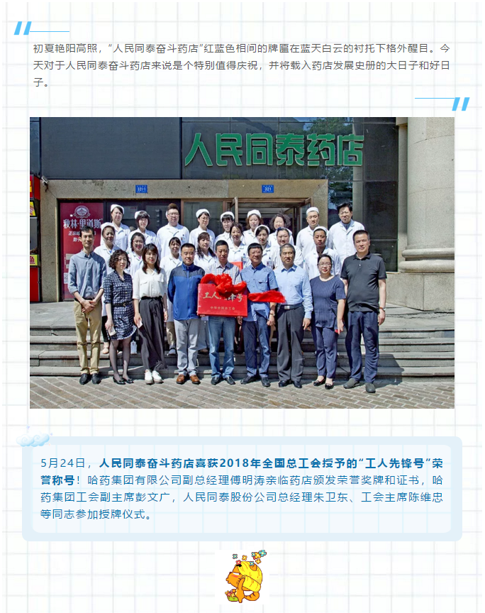 人民同泰奋斗药店喜获“全国工人先锋号”殊荣,哈药集团副总经理傅明涛亲临药店授牌