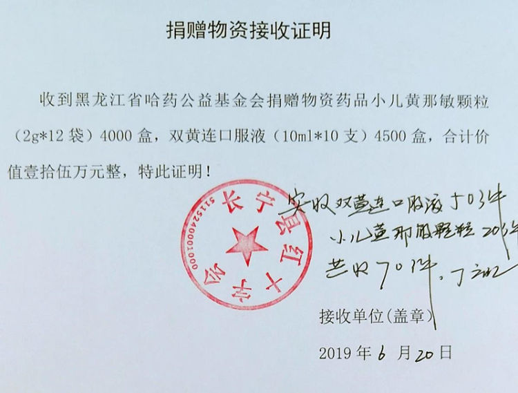 6月19日,哈药公益基金会收到长宁县红十字会发来的灾区所需救援药品目录,马上按目录协调四川省区组织调配药品,以最快速度将药品筹备齐全,由四川省区连夜组织专营商运输,于6月20日下午送达长宁县红十字会赈灾药品接收点。