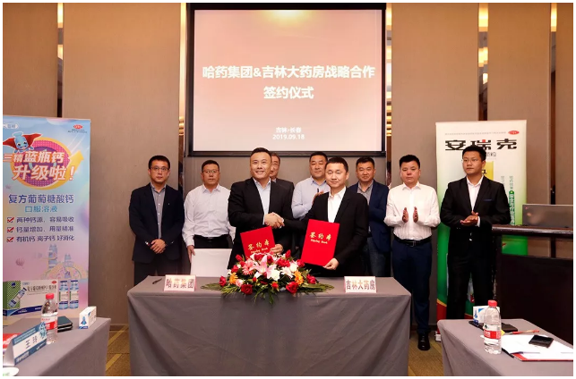 9月18日,哈药集团营销有限公司(以下简称“哈药营销”)与吉林大药房在吉林长春签署连锁战略合作协议,哈药营销执行总经理成文辉、吉林大药房总经理杨啓忠携管理团队出席本次签约仪式。
