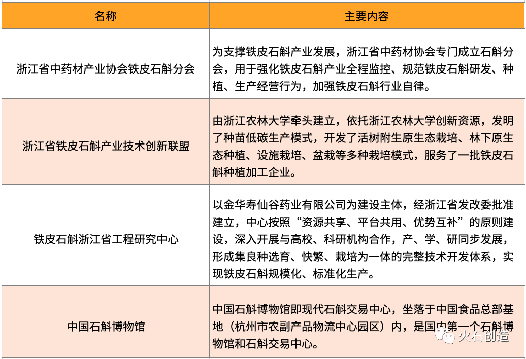 创新资源加速集聚。产学研合作方面,共有浙江大学、浙江农林大学、浙江中医药大学、浙江省医学科学院、浙江省中药研究所、浙江省农科院等20余家合作参与铁皮石斛技术创新、产品质量把控等工作。公共创新服务方面,已建立浙江省中药材产业协会铁皮石斛分会、浙江省保健品行业协会、浙江省铁皮石斛产业技术创新战略联盟、铁皮石斛浙江省工程研究中心、金华铁皮石斛产业协会,乐清铁皮石斛产业协会等产业创新服务机构。