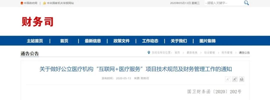 本次发布《通知》,分别从项目管理、财务要求、工作量统计、技术规范等4个维度,规范公立医疗机构“互联网+医疗服务”行为, 并明确了不同主体在开展“互联网+医疗服务”过程中的利益分配关系、收入确认原则、财务处理及票据处理要求等。