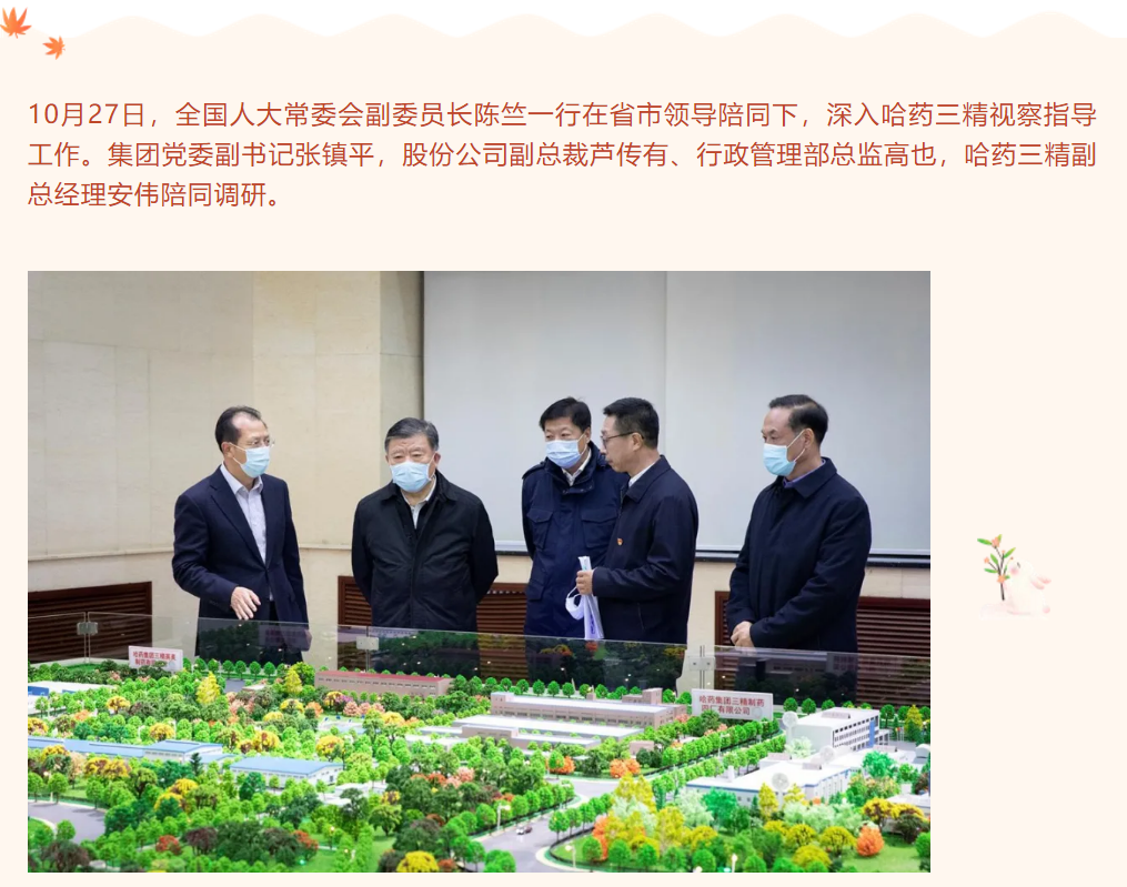 全国人大常委会副委员长陈竺深入哈药三精调研指导