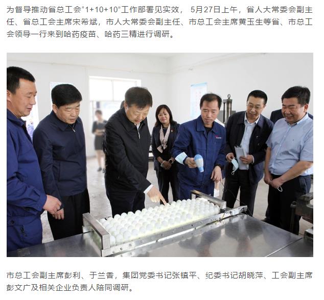 省总工会主席宋希斌、市总工会主席黄玉生深入哈药集团调研指导