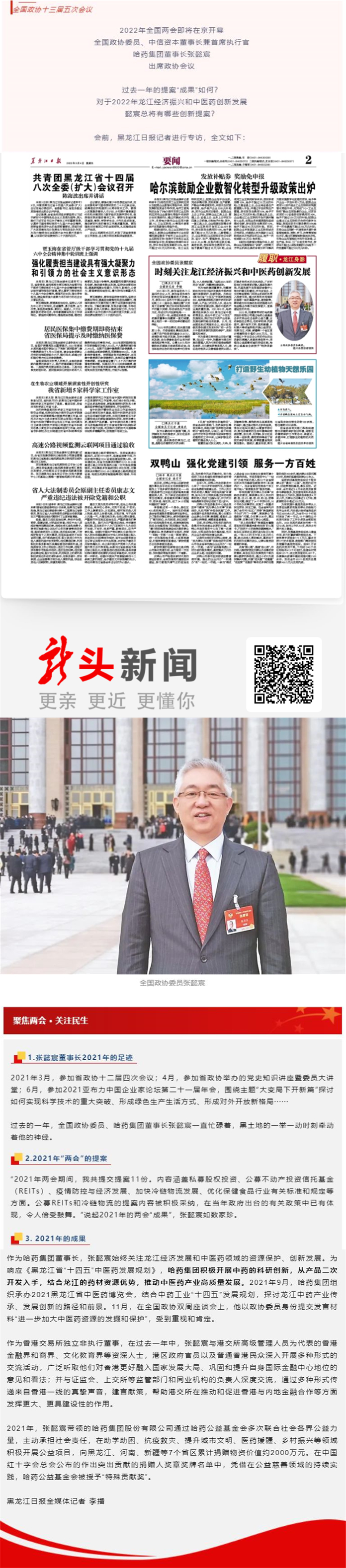 【聚焦两会】— 时刻关注龙江经济振兴和中医药创新发展
