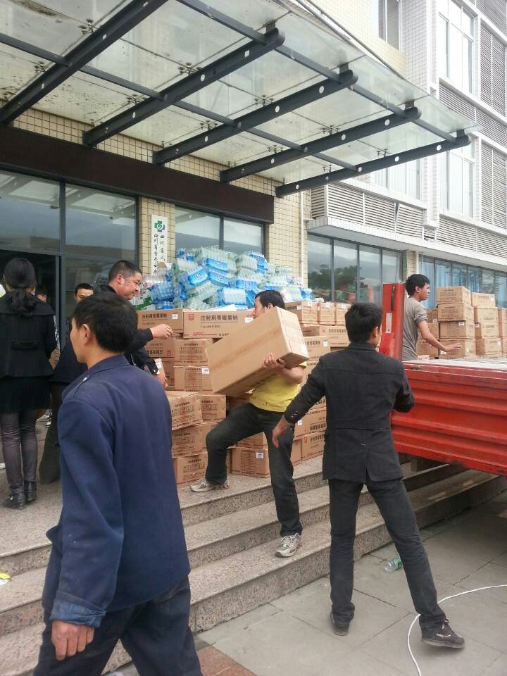 雅安传声·现场直击:芦山县人民医院哈药集团送来急需药品